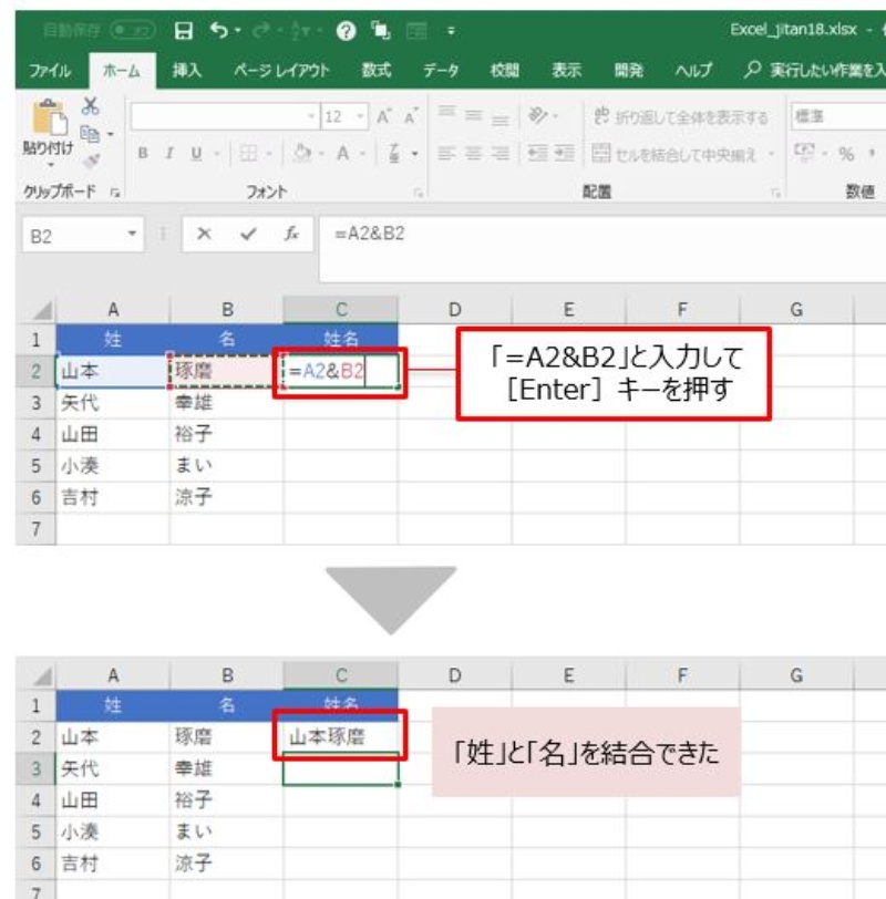 別々のセルに入った姓と名 一発結合のexcelテク 日経クロステック Xtech